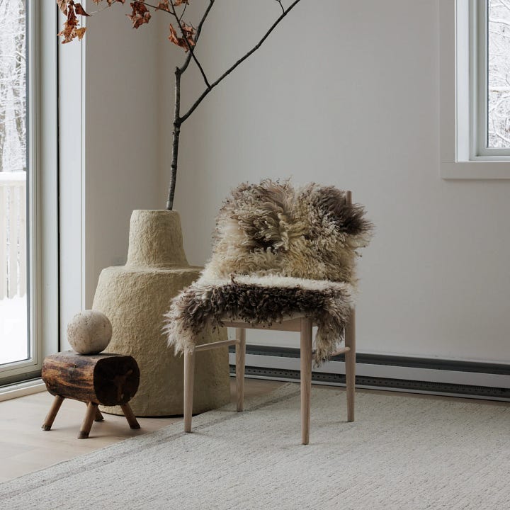 Tom Roberts and Anna Aberg have crafted a beautiful design language across their company, Homestedt. These days you can experience that language in multiple ways: at one of their two shops helmed by Roberts, in Livingston Manor and North Branch, New York, or by purchasing a Homestedt House, designed by Aberg. I stopped by their the barn at their ever-expanding compound in North Branch and picked out an Austrian Curlcoat Sheepskin, $180 from their extensive sheepskin collection.